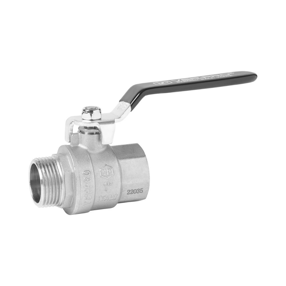 Кран шаровой VER-PRO НР/ВР, ручка - рычаг, никелированный