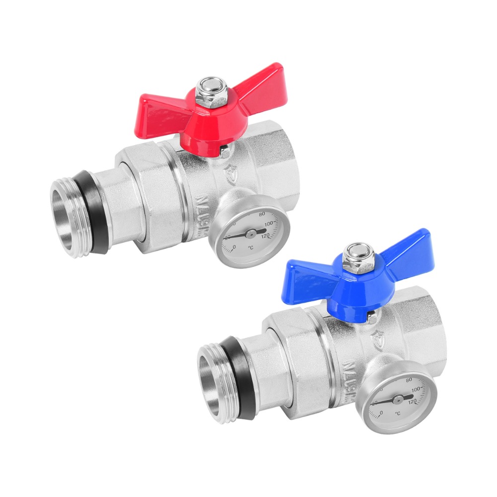 Кран шаровой прямой с полусгоном и термометром ВР/НР