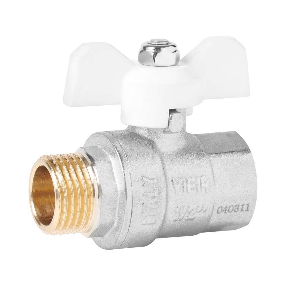 Кран шаровой ВР/НР, белая ручка - бабочка, никелированный